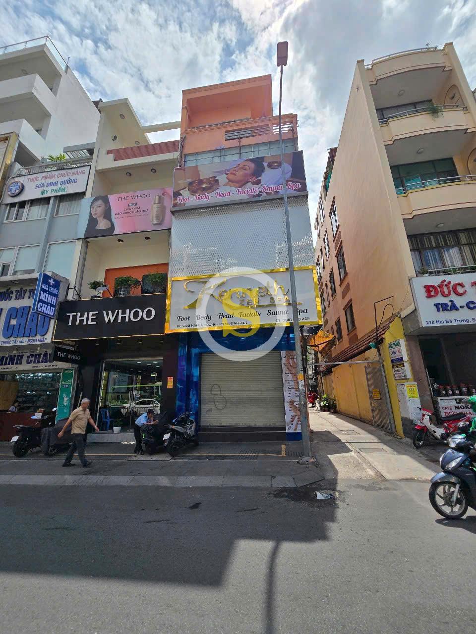 Cho thuê nhà GÓC 2MT số 222 đường Hai Bà Trưng, Phường Tân Định, Quận 1, Hồ Chí Minh